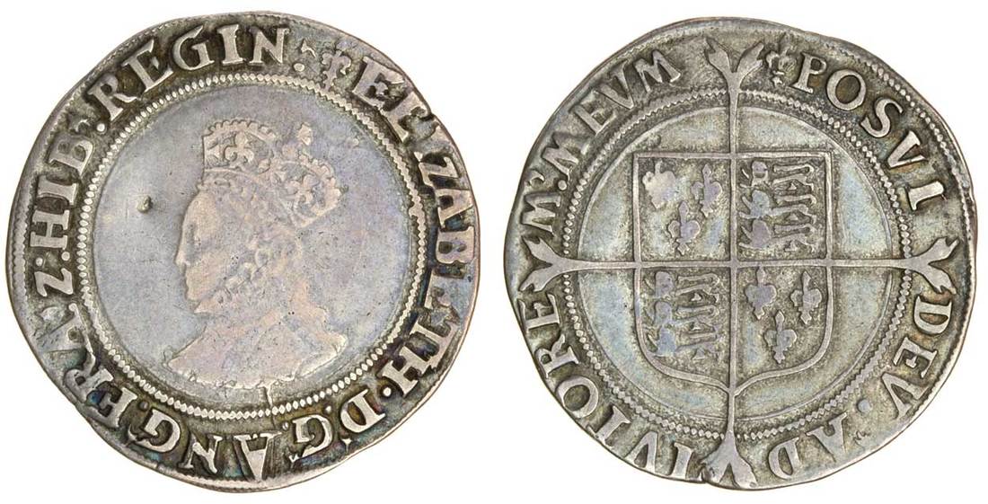 Elizabeth I (1558-1603), Shilling, first issue, 5.83g, m.m. lis, elizabeth d g ang fra z hib regin, crowned bust 2B left, rev. posvi dev adivtorem mevm, shield on long cross fourchée (N.1985; S.2549), a mark in front of the face, fine or nearly so