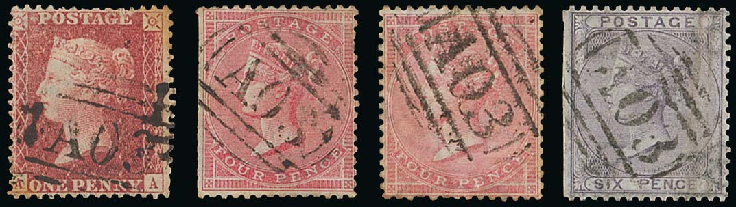 1d. rose-red, 4d. rose (2, one with straight-edge) and 6d. lilac (straight-edge), all neatly cancelled "A03"; 1d. with small faults though of generally fine appearance. S.G. Z1-3, £830. Photo