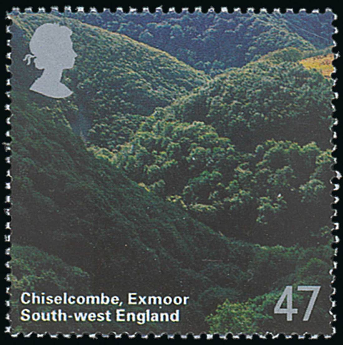 2004 A British Journey, Wales (1st.) Hyddgen Plylimon, variety imperforate and with "europa" in black, horizontal traffic light pair from the right of the sheet, also 2005 A British Journey, South West England 57p. Chiselcombe, Exeter, variety face value "47", unmounted mint, fine. S.G. 26467var., Footnote after S.G. 2517. Photo