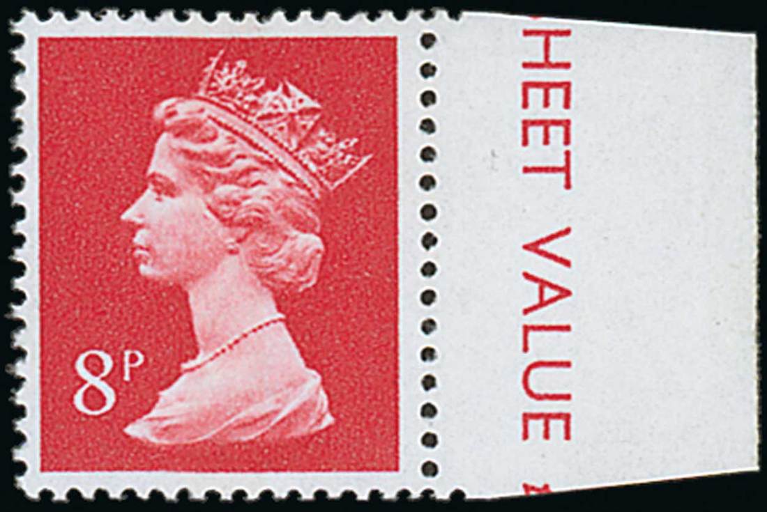 8p. rosine, one centre band, left marginal example with sheet inscription, uncoated paper. Fine unmounted mint. Rare. S.G. X879a, £900. Photo