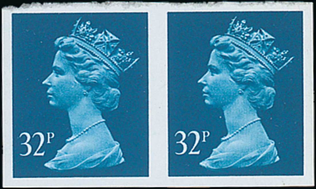 — 32p. greenish blue, imperforate pair. Fine unmounted mint. S.G. X983a, £3,000. Photo