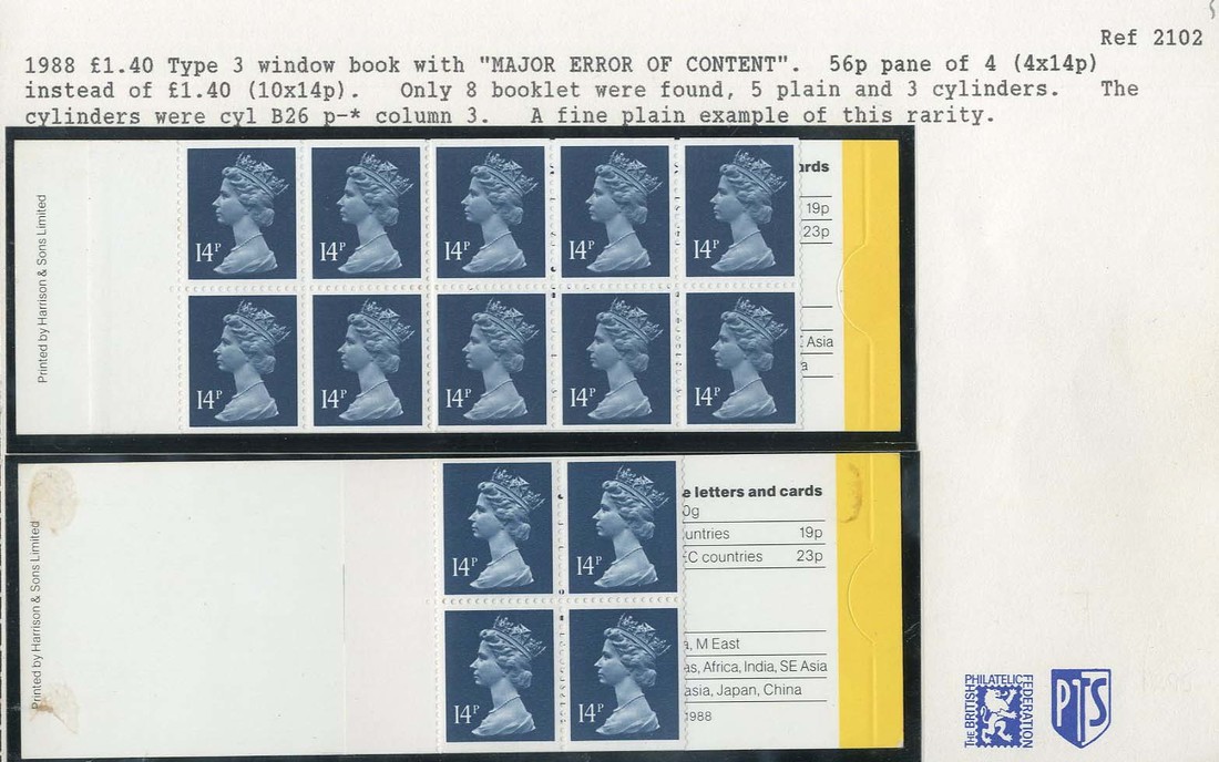 1971-2012 Machins, selection of loose folded, window and NVI booklets, contained in a carton, including some with cylinder numbers, phosphor varieties and 1988 £1.40 Type 3 window with error of content 56p. pane of four instead of £1.40 pane of ten; also selected Christmas types. Mostly fine with very careful inspection essential. (hundreds)
