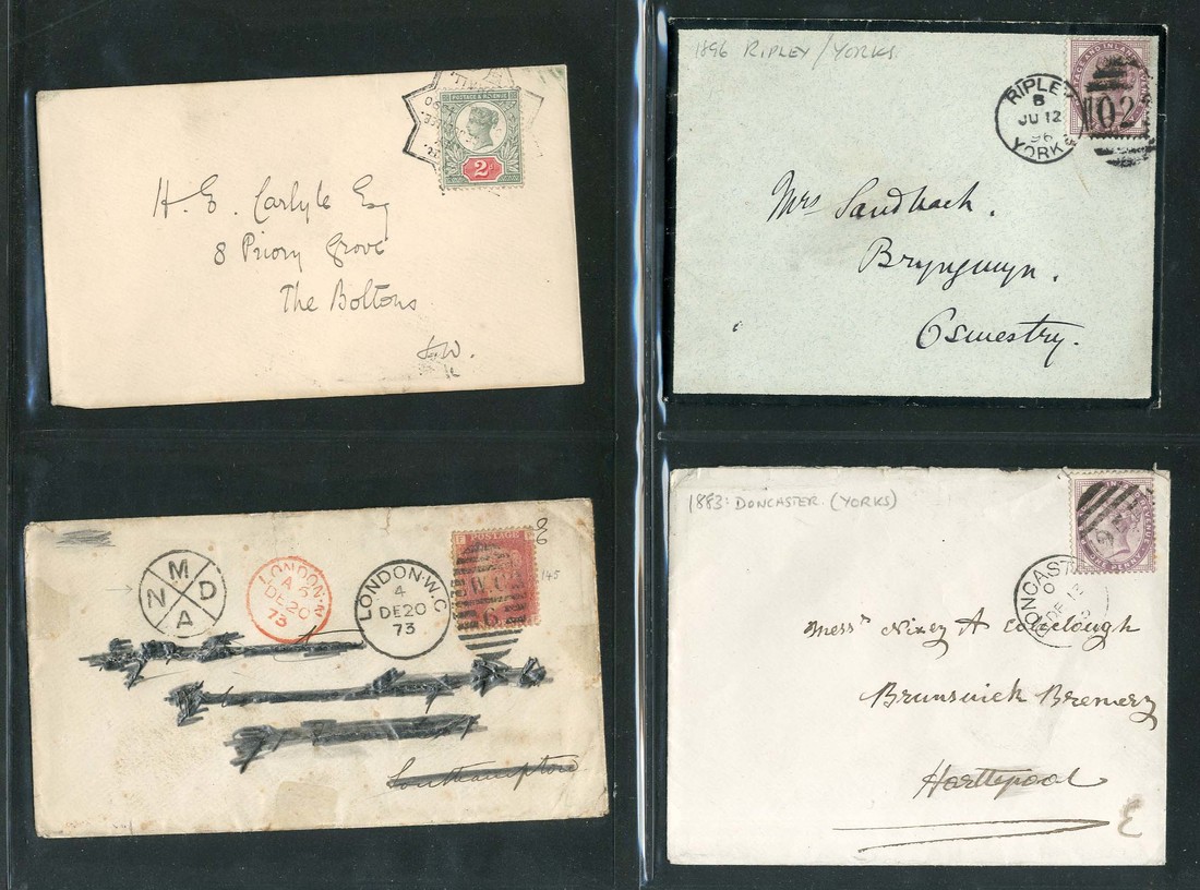 Collection of covers and cards housed in nine albums and loose contained in a carton, many hundreds, including some pre-stamp, Maltese Cross with numbers in Cross, good range of perforated 1d. Stars with Spoon cancellations, Spoon cancellations, military, some pieces, etc., mixed condition but an interesting lot