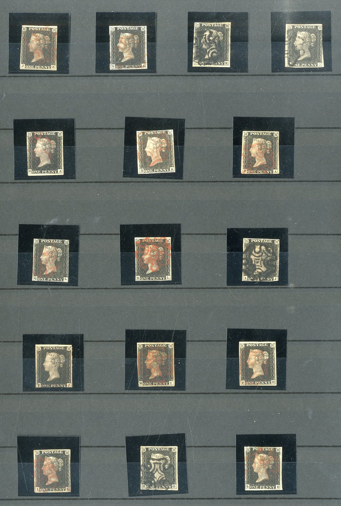 1840-1940 duplicated selection housed in a black stockbook, hundreds, including 1840 1d. (33 with one on entire, many with four margins), 2d. (3), 1841-53 1d. with numbers in Cross cancellations (7), 2d. (45), perf. Stars 2d. (13), 1858-79 plate numbers with 1d. (24 mint), 2d. plate 8 unused, plate 9 inverted watermark used, 1847-54 embossed 1/- (2), 10d. (2) and 6d. (5) all cut square, 1862-64 9d. (2), 1867-80 10d. handstamped "specimen", 2/- (3), 1867-83 watermark Cross 10/- and £1, 1873-80 8d. (2), watermark Spray 1/- orange-brown, 1883-84 blued paper 2/6d. handstamped "specimen", white paper 10/- (6), 1884 watermark Crowns £1 brown-lilac (3), 1887-92 1/- part original gum, £1 green (3), Edward VII issues with values to 10/- (2) and £1 (4), George V issues with 1913 £1 green, 1915 10/- (2), 1918-19 10/- (6), 1929 P.U.C. £1 (mint and used), a few Officials, used abroad, etc., mixed condition but a valuable and useful lot