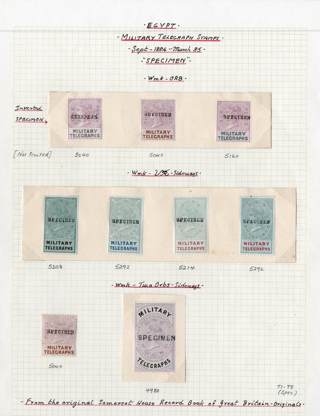 1884 1d. to £1 set of eight, unused, overprinted "specimen" type 9, (£1 type 10), each affixed to archive pieces believed to be from the Somerset House Record book. S.G. MT1-8s.