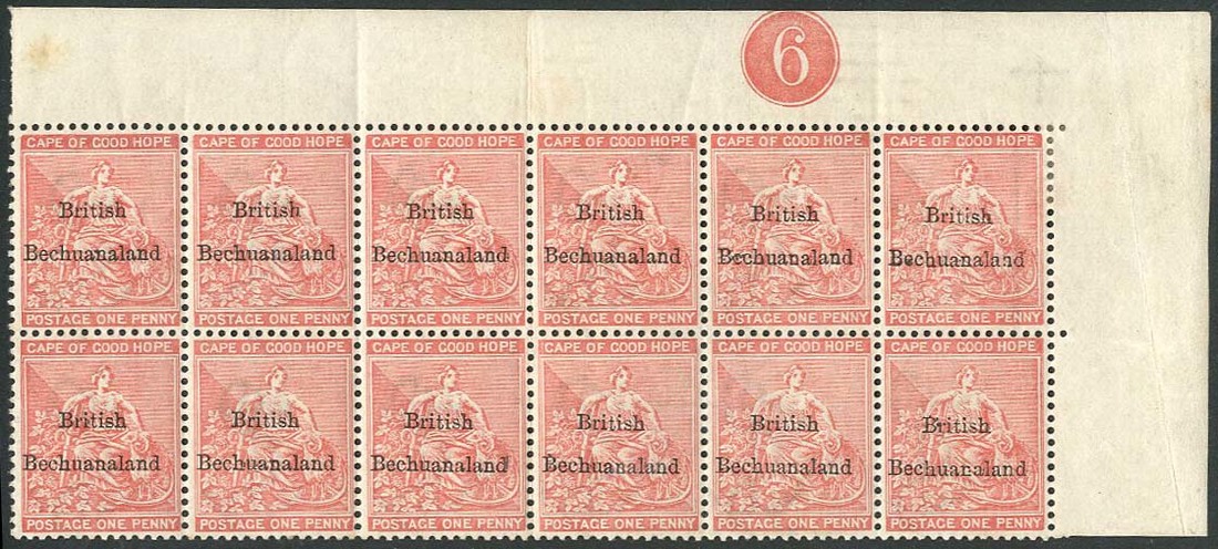 1885-87 1d. rose-red upper right corner block of twelve showing plate number 6 in margin, couple of faint tone specks, otherwise fine mint with ten of the twelve stamps unmounted. S.G. 5, £324