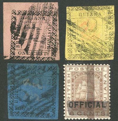 1862 typeset 1c. on rose, 2c. on yellow, 4c. on blue (variety "1" for "i" in "british"), used, faults as usual, also 1876 Provisional Official 6c. brown with two horizontal bars and one vertical, unused without gum; S.G. 116, 119, 123ba, 145, Cat. £3,900