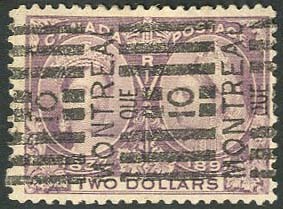 1897 Jubilee $2 deep violet, roller cancellation, tiny thin at top. S.G. 137, £425