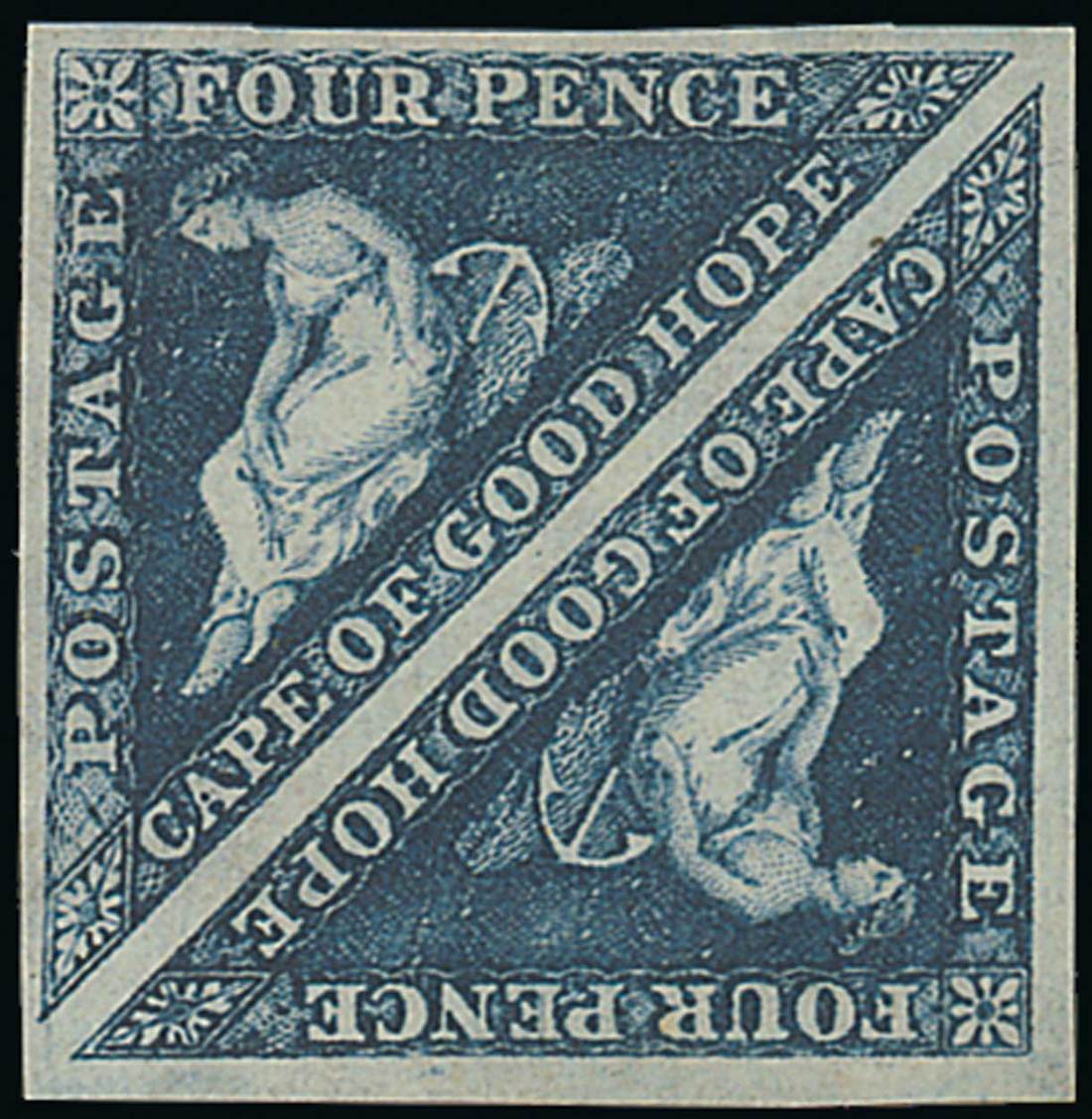 4d. deep blue pair, good to large margins, unused with large part original gum; tiny wrinkle, fresh appearance. B.P.A. Certificate (1972). S.G. 19, £600+. Photo