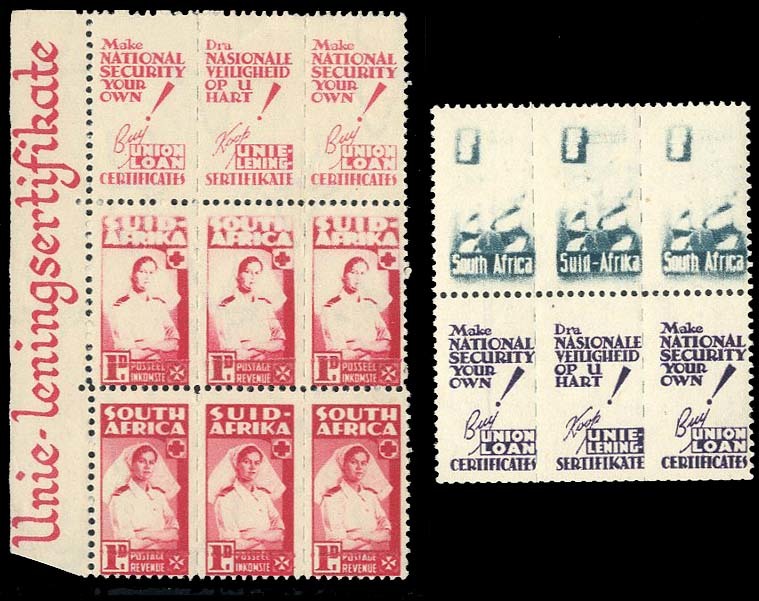 ½d. marginal unit with dramatic partial dry print and 1d. corner vertical pair of units with partial dry print affecting the upper unit; fine mint