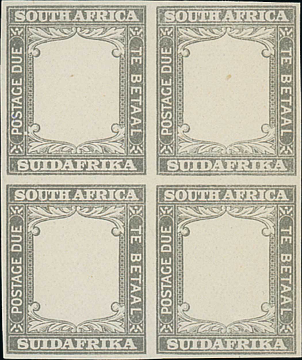 1927-28 imperforate plate proofs of the frame in green, carmine and slate, all in blocks of four on gummed unwatermarked paper; one 1d. with small inclusion, otherwise fine. Photo