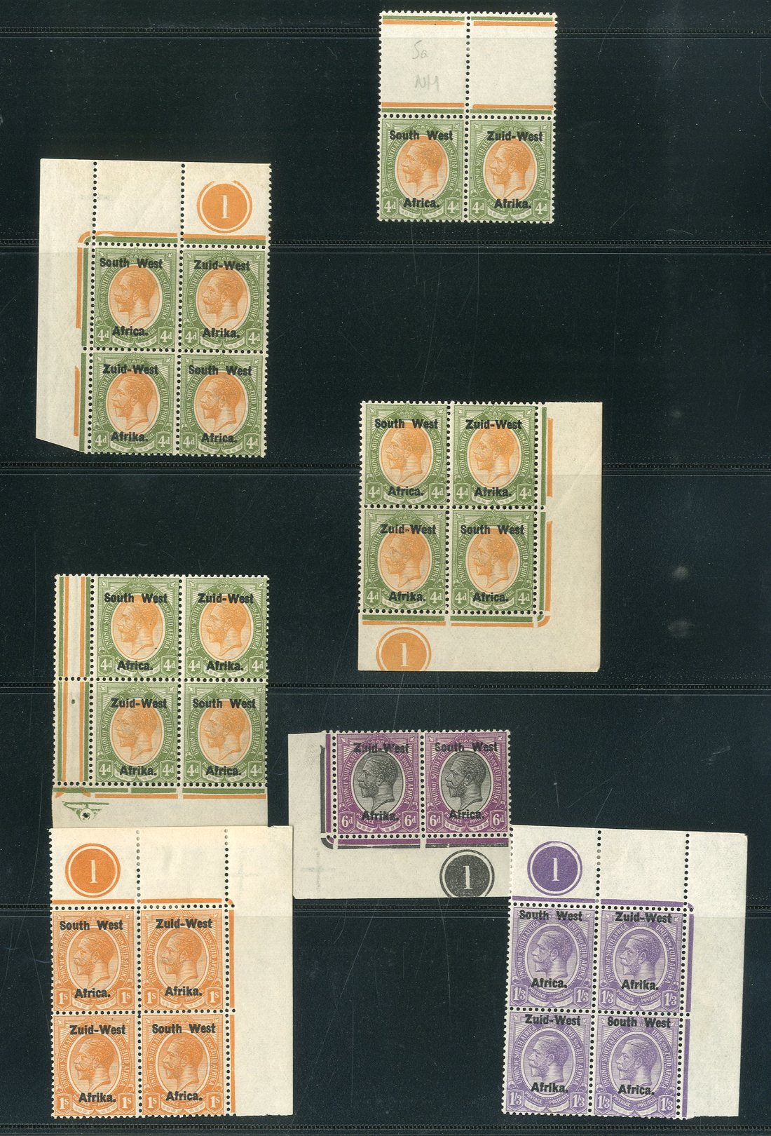 ½d. blocks of forty-eight, thirty-six (2, one with plate number 5 and one with interpanneau margin at top), twenty-four (2, both with interpanneau margin at top) and eight (interpanneau), 4d. upper left and lower right plate number blocks of four, corner block of four with interpanneau margin and a pair with interpanneau margin at top, 6d. lower left plate number pair, 1/- and 1/3d. upper right plate number blocks of four, fine mint