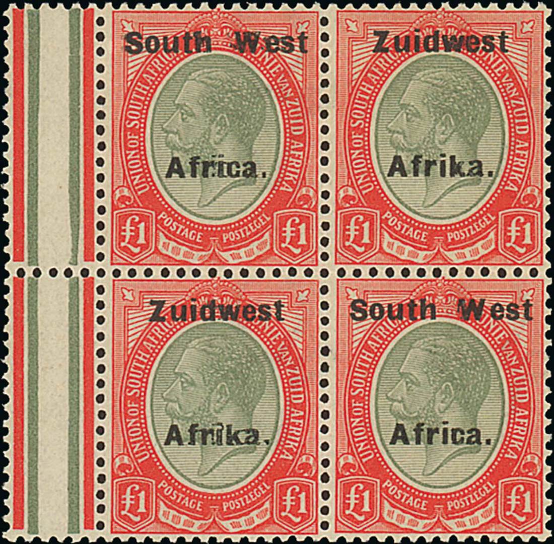 This issue was overprinted in complete sheets of 240 with initially "South West Africa" 16½mm. long on the upper two panes and 16mm. on the lower two panes. This order was subsequently reversed. For printings from 8 November 1926 all four panes had the 16½mm. measurement