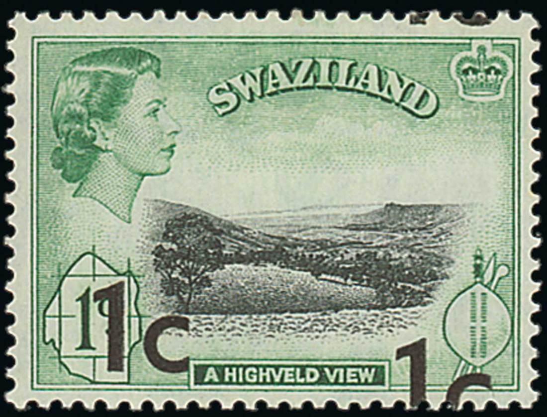 1c. on 1d. black and emerald, surcharge double, unmounted mint, fine. BPA Certificate (1987). S.G. 66a, £2,100. Photo