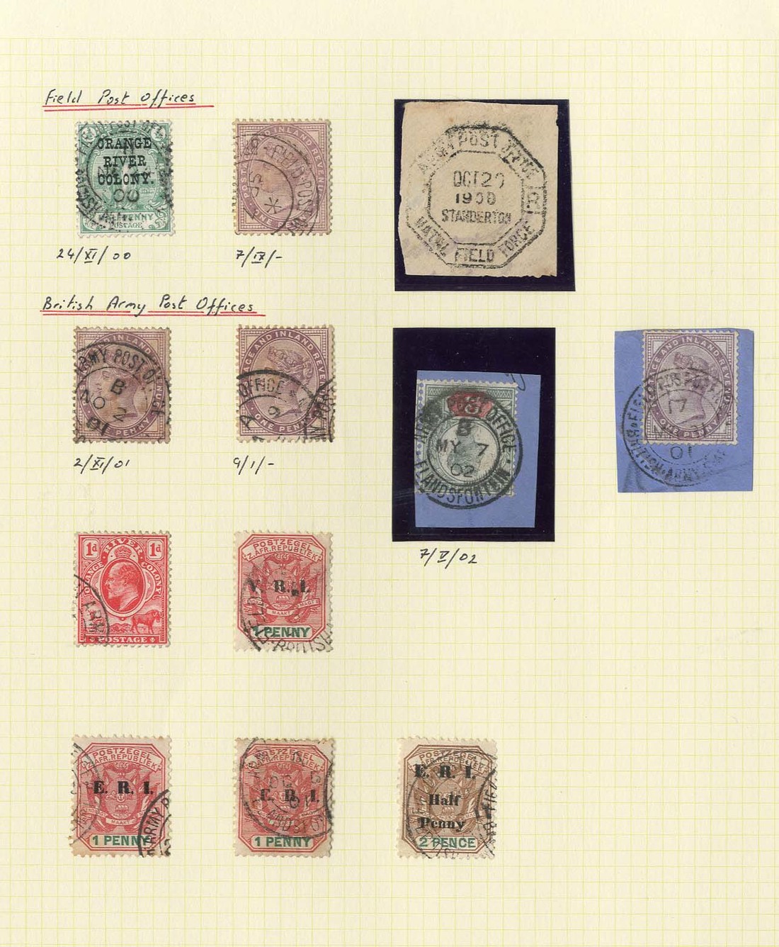 Selection in album and stockbook, over 800, including Amersfoort to Worcester, Transvaal used in Cape Town, Orange River Colony, Orange River Colony used in the Cape, Cape of Good Hope used in Orange River Colony, Cape of Good Hope used in Natal, etc., chiefly good to fine
