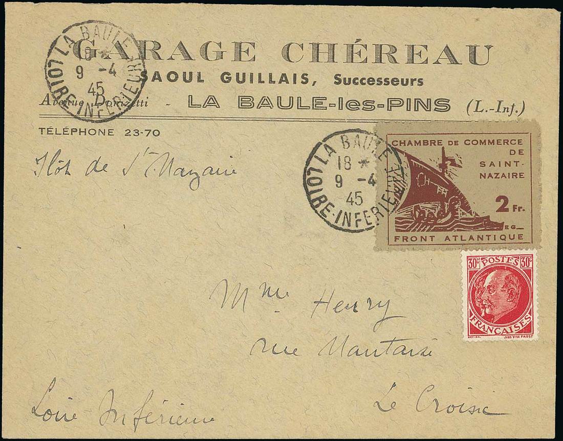 Collection on eight pages covering 41 issuing authorities, featuring a group of semi-official airmails (12), liberation overprints (13), and local posts (8), much better material including 1941 French Expeditionary Force Anti-Bolshevist Legion 100f. miniature sheet mint, and St. Nazaire 1945 (9.April) cover bearing U-boat base local postage 2fr. with a Propaganda forgery of 30c. Vichy issue. A most attractive group. Photo