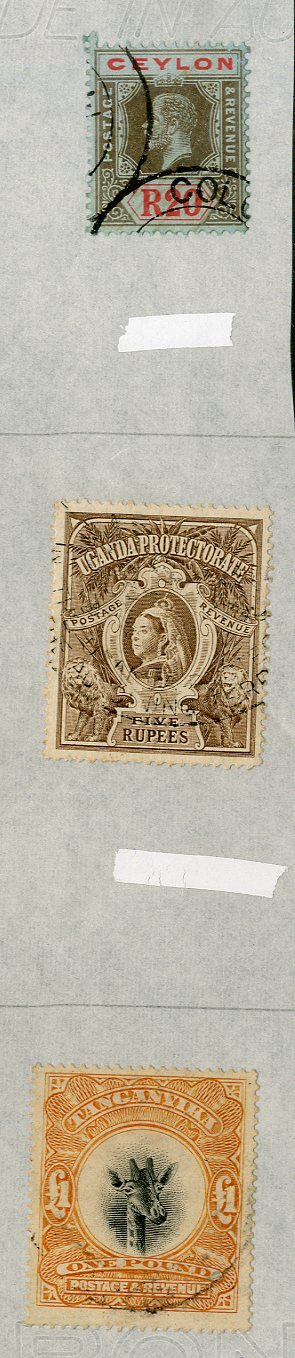 British Empire mixed mint and used selection loose and on part leaves including Tanganyika 1922-24 £1 used (not guaranteed), Uganda 1898-1902 5r. used; also Antigua Stamp Duty 1870 CC 2d. to 4/- unused. Condition mixed. (108)