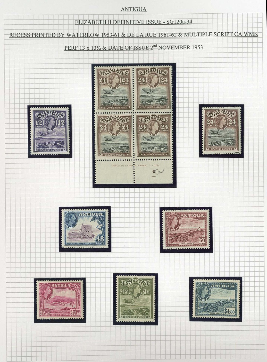 1953-66 a mint collection with plate and imprint blocks neatly arranged in an album comprising Antigua, Bahamas, Barbados, Basutoland and Bermuda. Mostly good to fine. (hundreds)