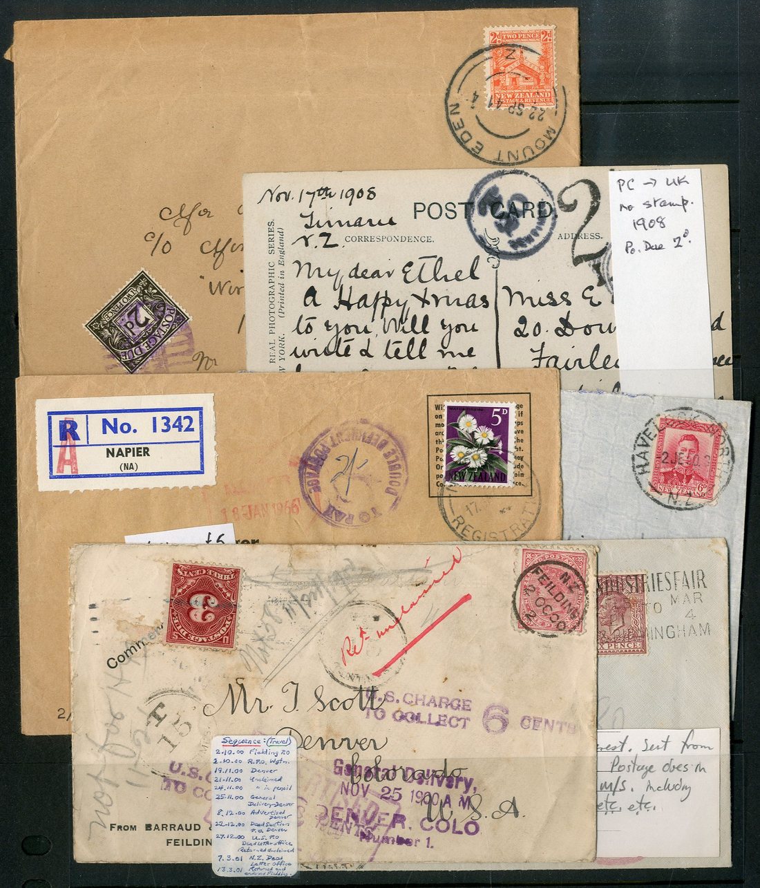 Selection of thirty-four Postage Due covers and cards dated between 1900 and 1907, including British Colombia, Fiji, France, Great Britain, New South Wales, New Zealand, Switzerland, United States, etc., chiefly good to fine