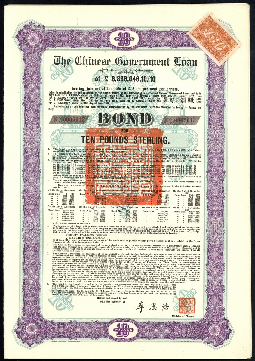 1925, 8% 'Skoda' Loan, a group of 10 bonds for £10, all with complete coupons. EF. (10)