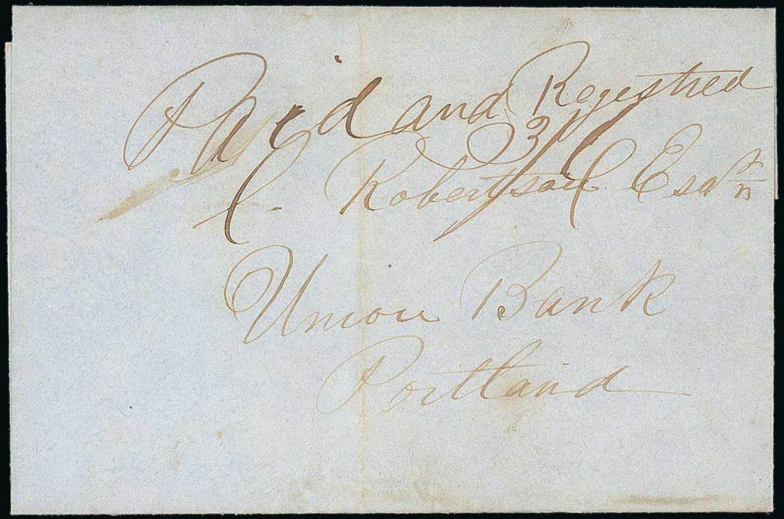 1847 (25 Nov.) entire from The Glenelg to Portland, marked "Paid and Registered", rated "3/6" and showing, on reverse, "the glenelg/port phillip" and "portland/new s. wales" oval datestamps. Photo