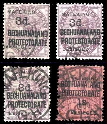 On Bechuanaland Protectorate 3d. on 1d. (3) and 1s. on 6d., generally fine used. PFSA Certificate (1967) for one 3d. and 1s. S.G. 12, 14, £400