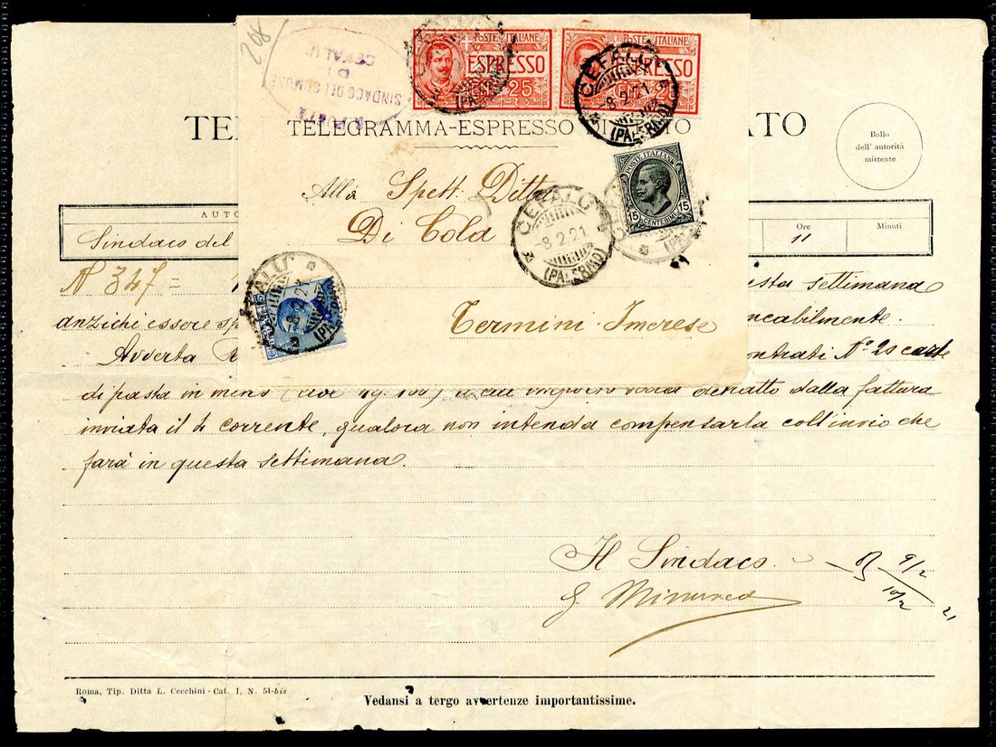 Very early proofs for proposed Telegraph issues, five embossed issues including three types unlisted by Hiscocks, one particularly attractive proof in red and yellow closely related to the "Renard" fiscal essays of France, offered with complete forms (5) and pieces (11) showing scarce usage of Italian postage stamps for telegraphic purposes.