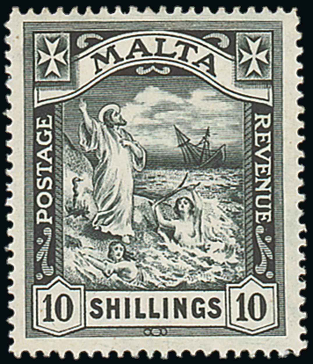 1919 (6 Mar.) MCA 10/- black, fresh lightly mounted mint; trace of a vertical gum crease at centre, otherwise fine. A most attractive example of this iconic high value. S.G. 96, £3,250. Photo