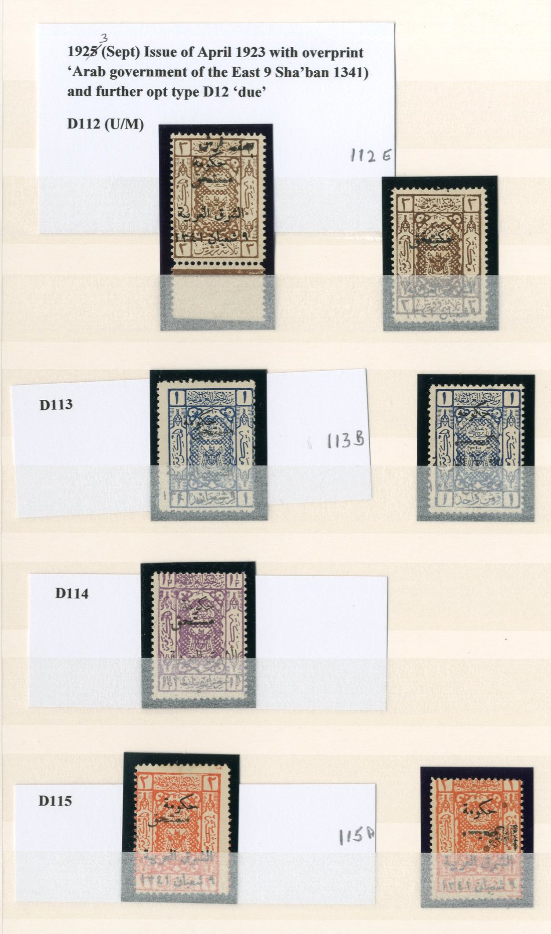 1923-49 predominately mint collection (92) in a blue stockbook, including 1923 (Sept.) set, ½p. on 3p. surcharge omitted, 1p. "Due" omitted, 2p. "Due" inverted, four line handstamp ½p. and another with handstamp and surcharge inverted, 1923 (Oct.) set, 1925 set overprinted "specimen", 1926 surcharge set, 1929-29 sets "specimen", mint and used, Official stamp 1924 ½p. and another Arabic "1242", etc., chiefly fine