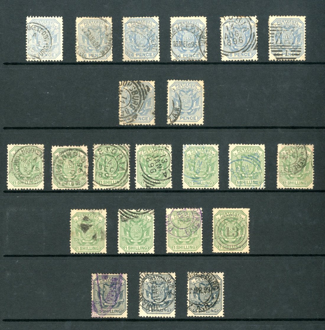 1885-95 predominantly used collection of Vurtheim types (approximately 600) on stock sheets, showing a wide variety of postmarks and usage, including blocks, pairs, on piece etc., values to £5 deep green used (7) plus forgeries/reprints (6), condition mixed in places though the majority good to fine.