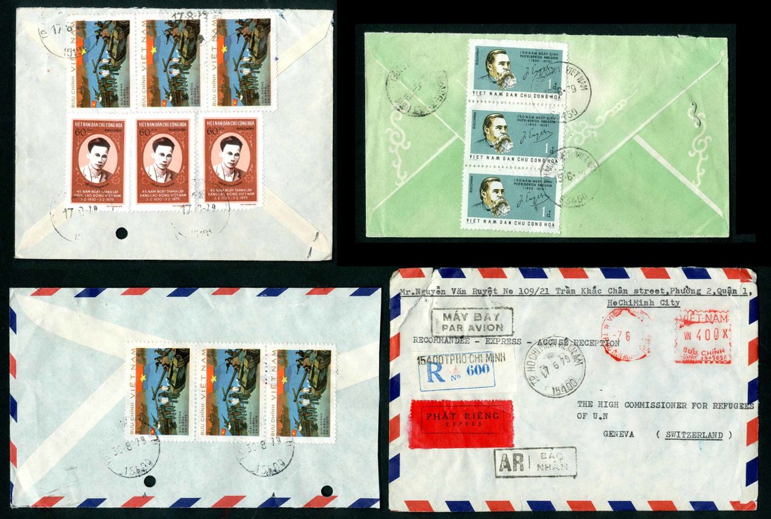 1979-81 selection of over 300 commercial covers to the United Nations High Commission for Refugees in Geneva, including many registered, meter frankings, decorative envelopes, etc., also 90+ envelopes, similarly addressed but from different origins, chiefly Canada and Hong Kong; mixed condition. An interesting group