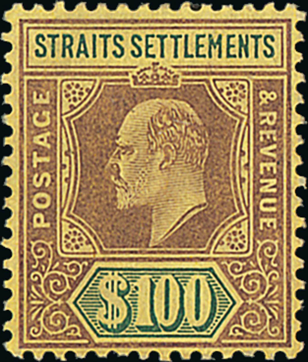 $100 purple and green on yellow, fine mint. A choice example of this rare stamp. A. Diena Certificate (1973). S.G. 122, £22,000. Photo