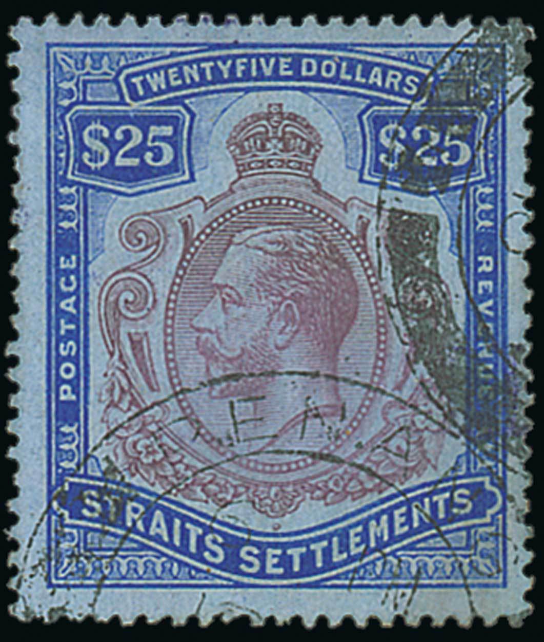 $25 purple and blue on blue, fine used. S.G. 213, £650. Photo