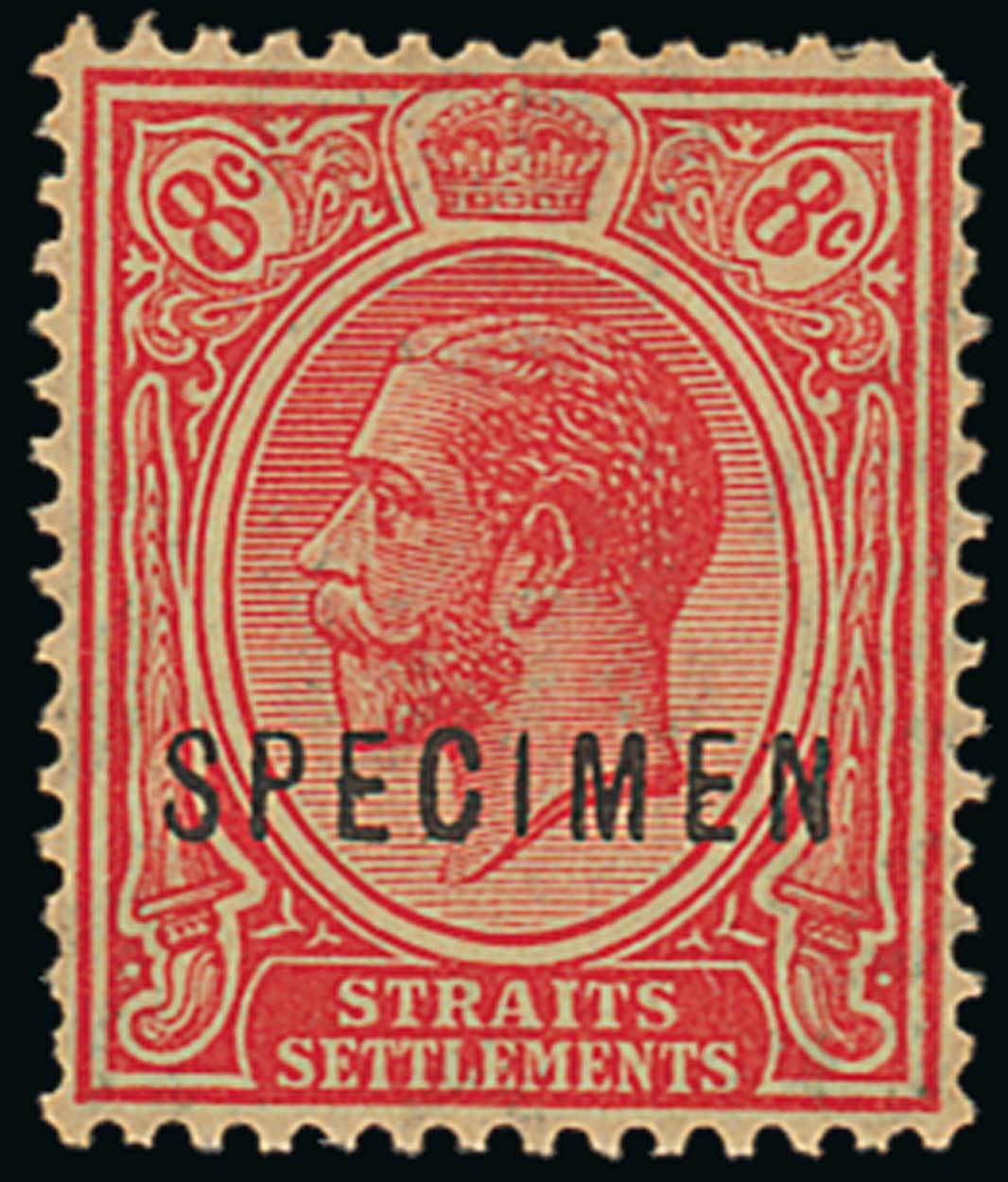 8c. carmine overprinted "specimen", top right corner slightly rounded and a little gum toned. Scarce. S.G. 240es, £600. Photo
