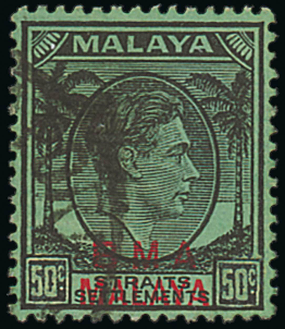 1945-48 50c. black on emerald, a "used" example, fine. PhotoF