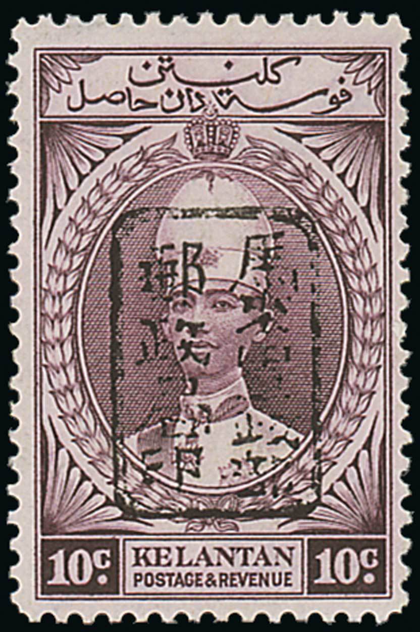 1942 (Apr.) 10c. purple with single frame chop (Type F) in black, unused with large part original gum, fine. B.P.A. Certificate (2017). ISC J30; see footnote after SG J223. Photo