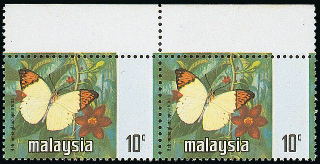 10c. horizontal pair with margin at top, variety black (State inscription, portrait and arms) omitted, one with a slight wrinkle otherwise fine unmounted mint. S.G. 150a, £320. Photo
