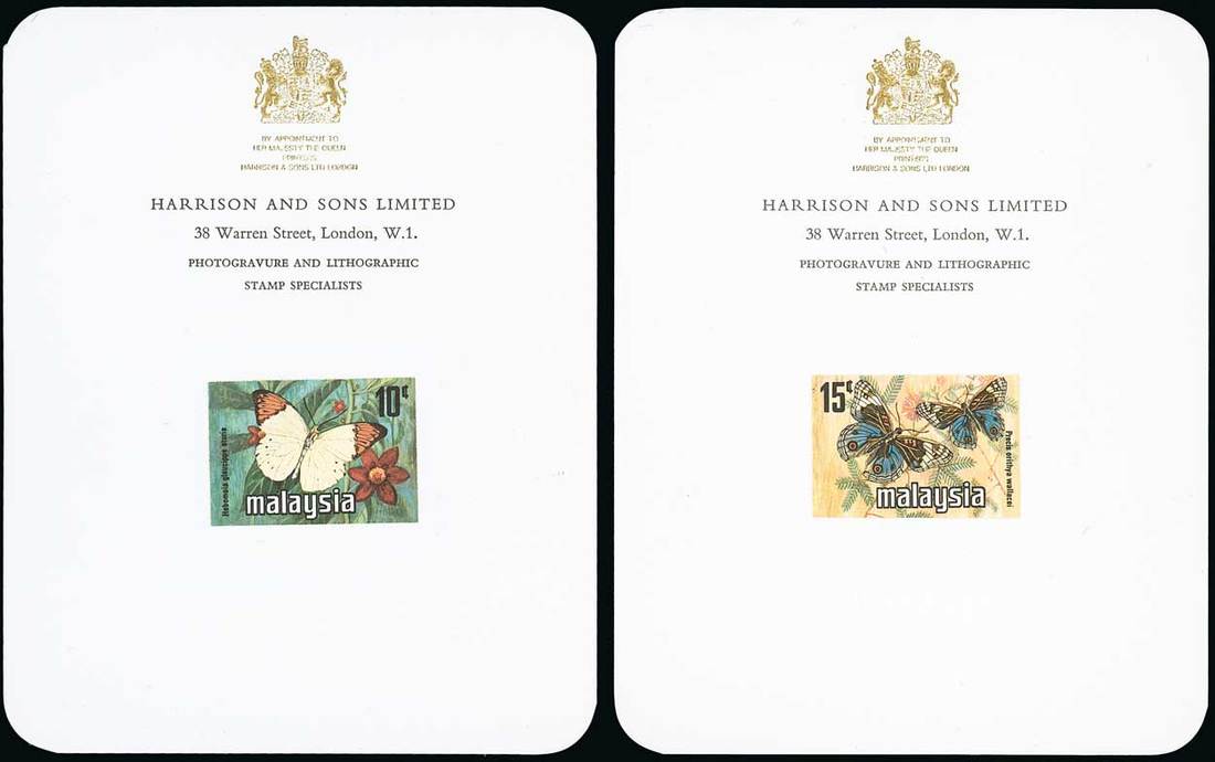 10c. and 15c. imperforate proofs, both affixed to Harrison presentation cards, fine and very rare as it is thought that only two cards of both values are available to collectors. Also 15c. coil strip of four with leader attached, fine. Photo