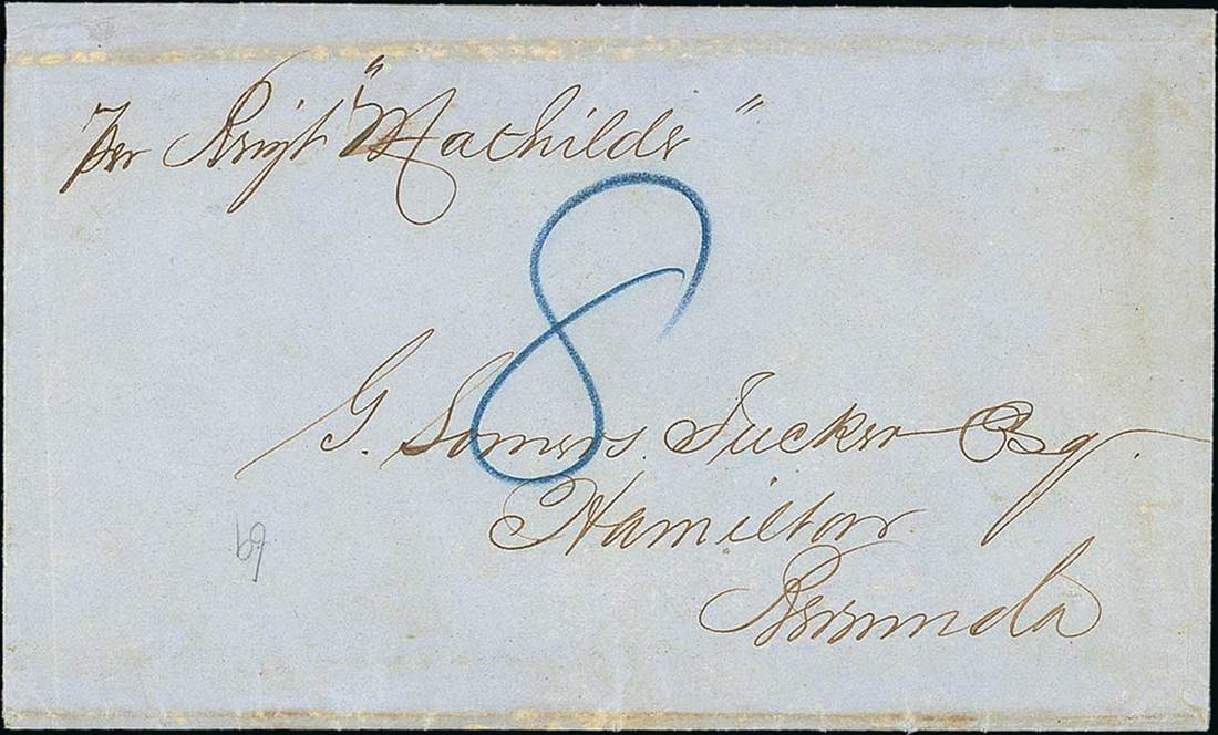 Because private ships did not maintain regular schedules, unless the ship is identified on the cover it is very difficult to determine what vessel carried a particular letter. The Bermuda Royal Gazette recorded the appropriate shipping news often permitting the ship's identification