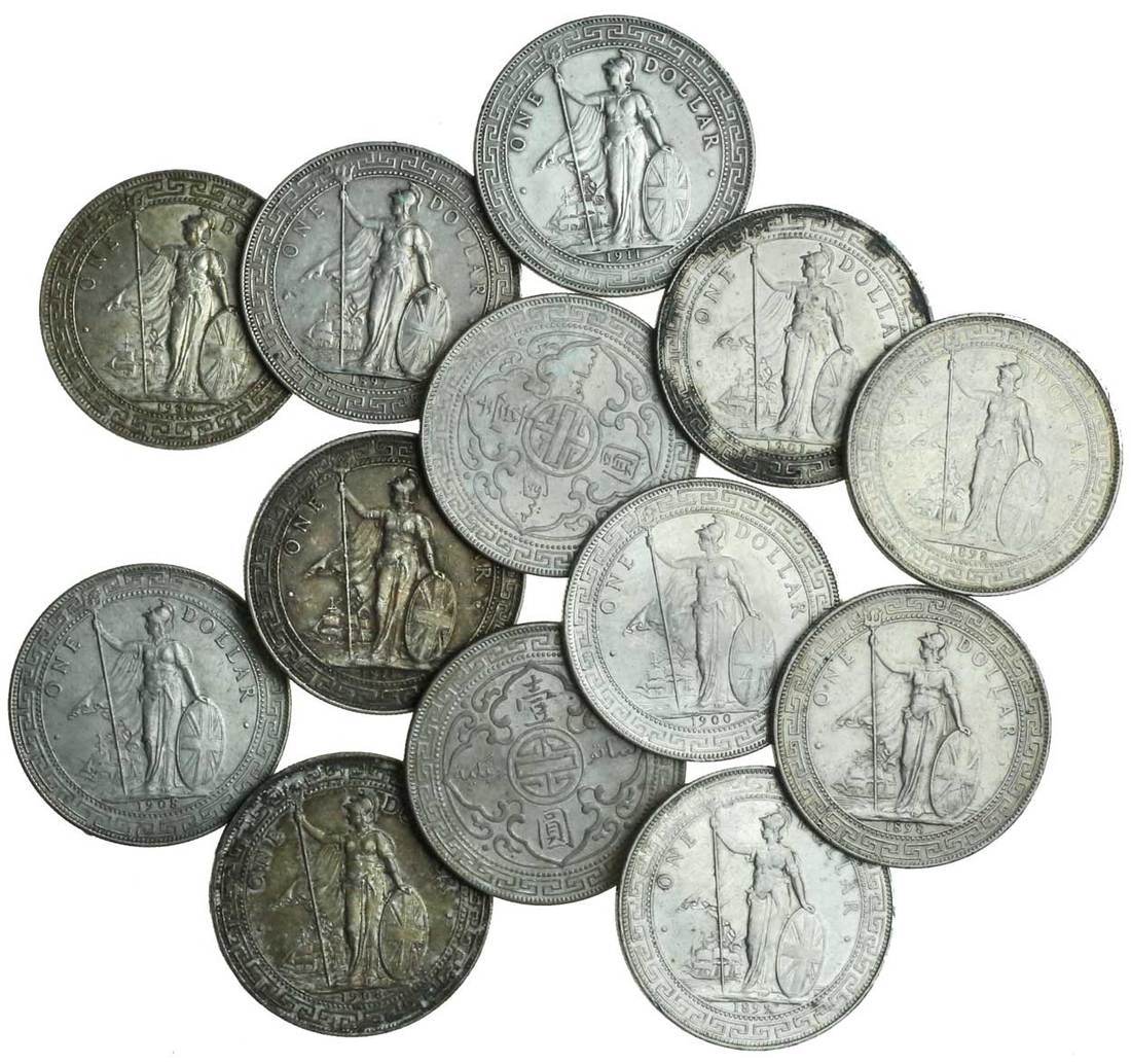 British Trade Dollars (13), 1897, 1898, 1898B, 1899B, 1900B, 1901B, 1902B, 1903B, 1908B (2), 1911B (2), and 1930, very fine and better (13)