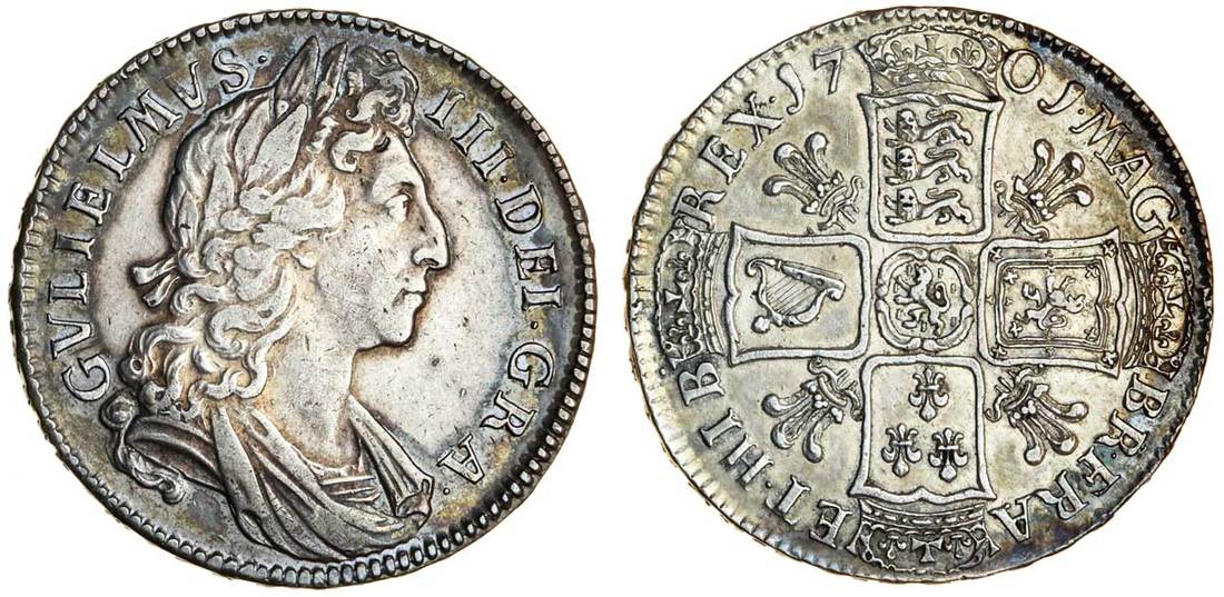 William III (1694-1702), Halfcrown, 1701 d.tertio, first bust right, rev. crowned cruciform shields, plumes in angles, lion of Nassau at centre (ESC 1052 (567); S.3496), a bold very fine, rare