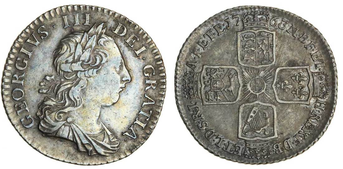 George III (1760-1820), Shilling, 1763, young cuirassed bust right, rev. crowned cruciform shields, plain angles, Garter star at centre (ESC 2124 (1214); S.3742), toned, very fine