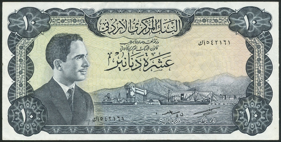 (x) Central Bank of Jordan, a set from the 'first series' without law date issue, comprising 1/2 dinar (2), brown, 1 dinar, green, 5 dinar, red, 10 dinar 10, all with King Hussein at right