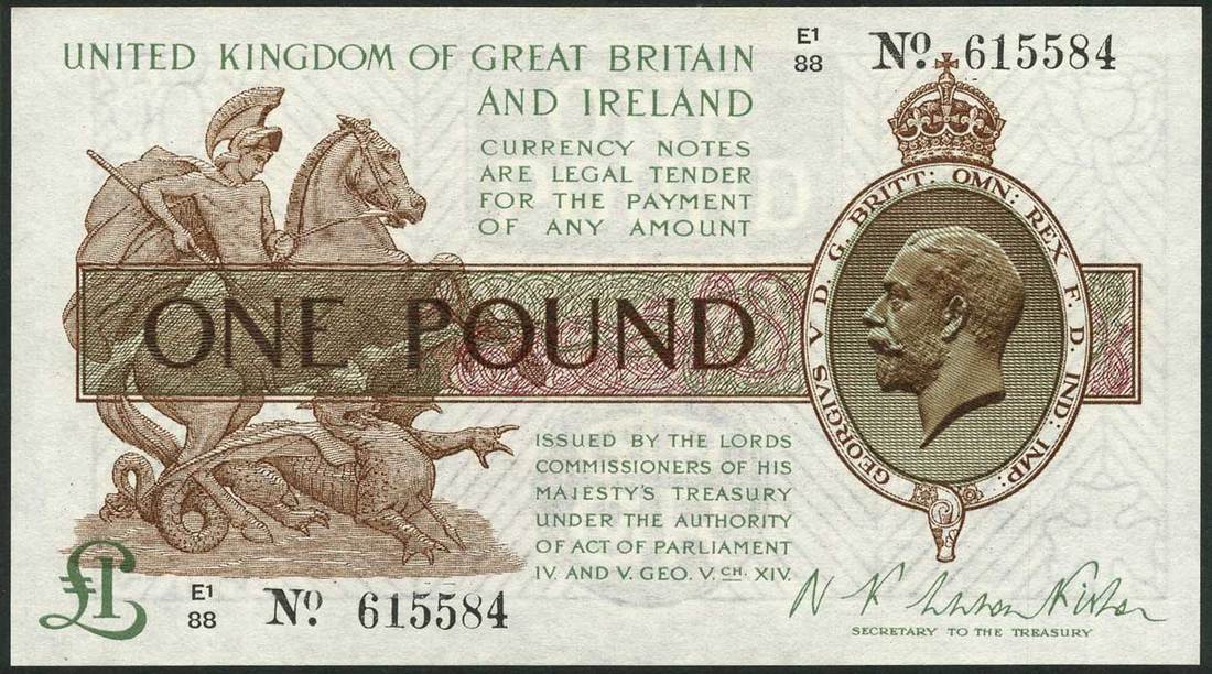 Treasury Series, N.F.Warren Fisher, £1 (3), ND (1923), prefixes A/1, E1, K1, purple, brown, green and lilac, Saint George and the dragon at left, crowned head of George V at right, reverse the Houses of Parliament at centre