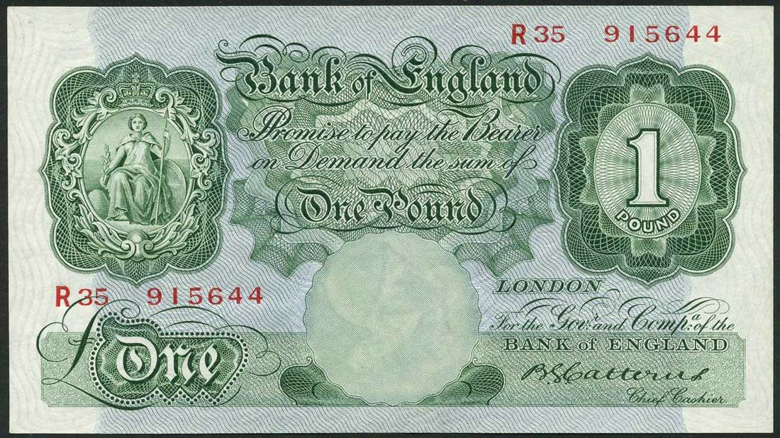 Bank of England, B.G.Catterns, £1 (6), ND (1930), prefixes J,O(2), N,R,T, green and pale blue, ornate crowned vignette of Britannia at left, value at right
