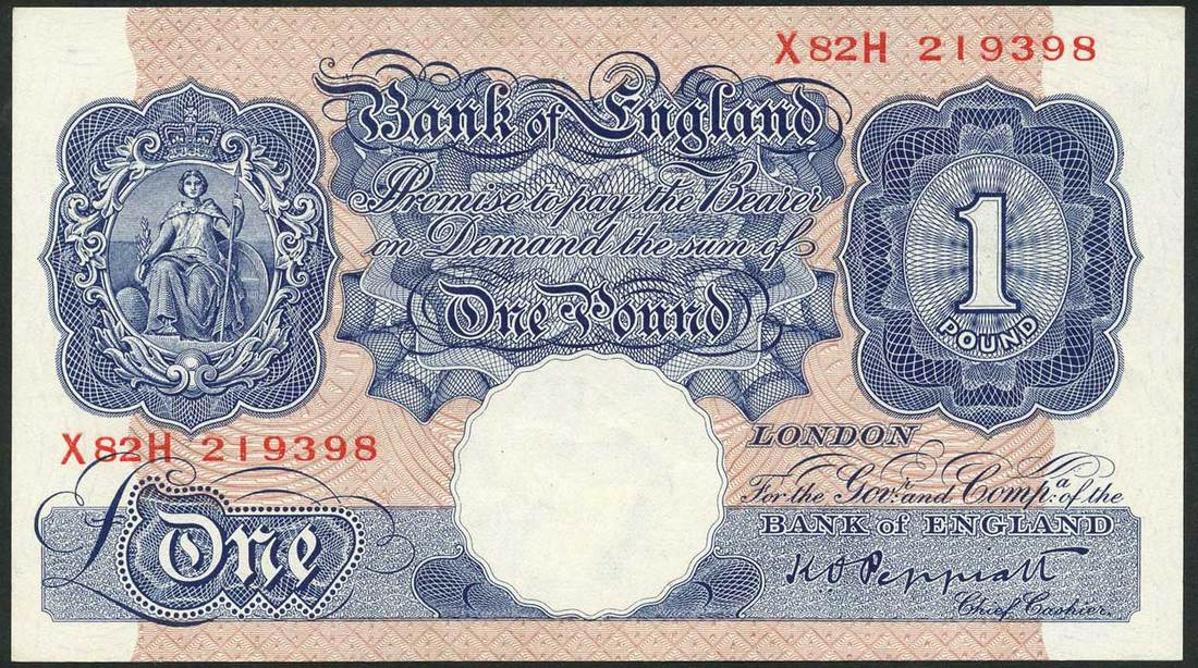 Bank of England, K.O.Peppiatt, £1 (22), mixed prefixes, blue and pale brown, ornate crowned vignette of Britannia at left, value at right