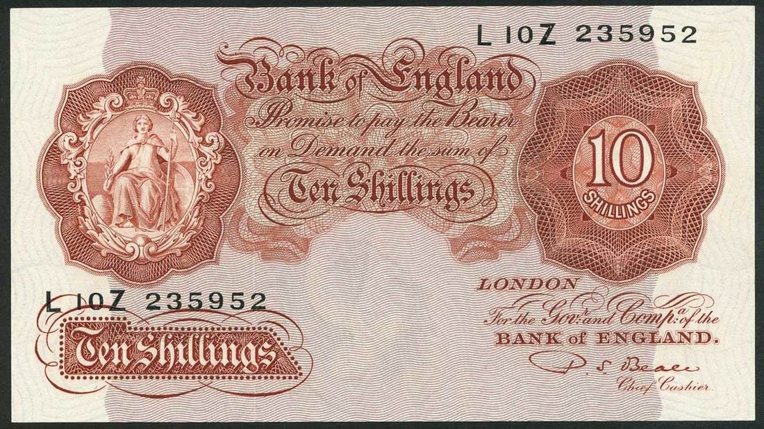 Bank of England, P.S Beale, 10 shillings (10), ND (1950), brown, ornate crowned vignette of Britannia at left, value at right