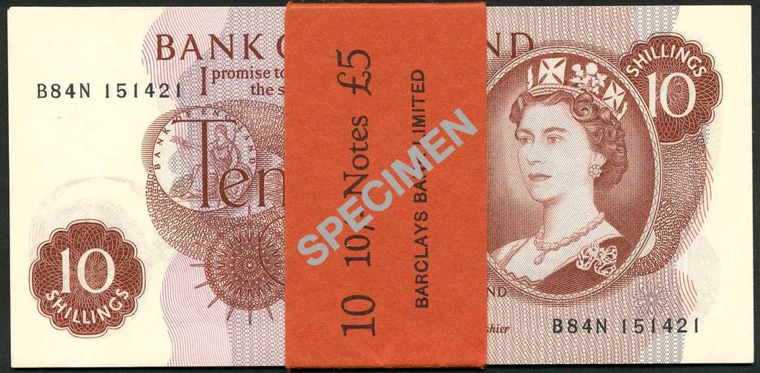 Bank of England, J.S Fforde, a large group 10/-, ND (1967), prefixes A90N (10), C25N (58), C79N (10), B86N, C01N, A90N, B84N (10), B15N (40), C28NB (14), B04N, C41N (10), C43N and replacement M63, M75 (2), brown, Elizabeth II at right, reverse brown, Britannia