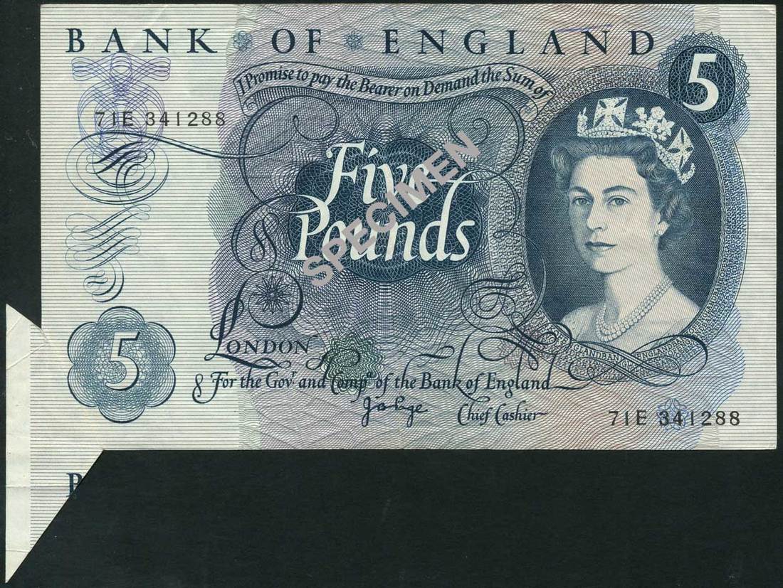 Bank of England, J.B.Page, ERROR: £5, ND (1971), suffix 71E, blue, Elizabeth II at right