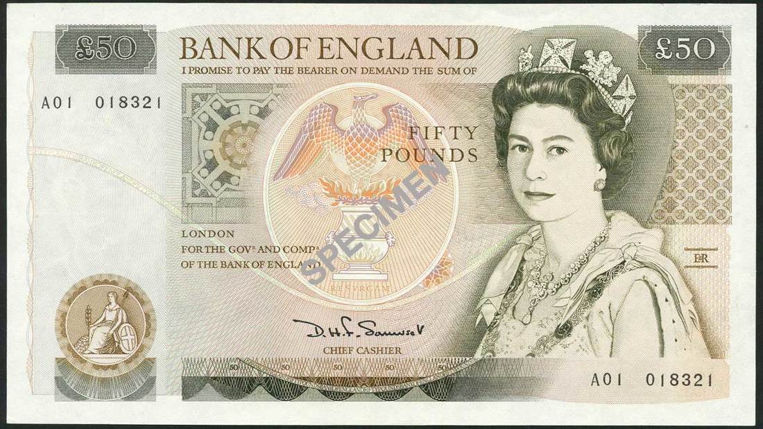 Bank of England, D H F Somerset, a group comprising £1 (3), ND (1981), prefixes DT82 DX81 (6), BX35, green, £5, ND (1980), prefix HT45, blue, £10 (2), ND (1980), prefixes CN56, CS90, £20, ND (1988), prefixes 51C, E37, purple, £50, ND (1981), serial numbers A01 018321, A02 111925,